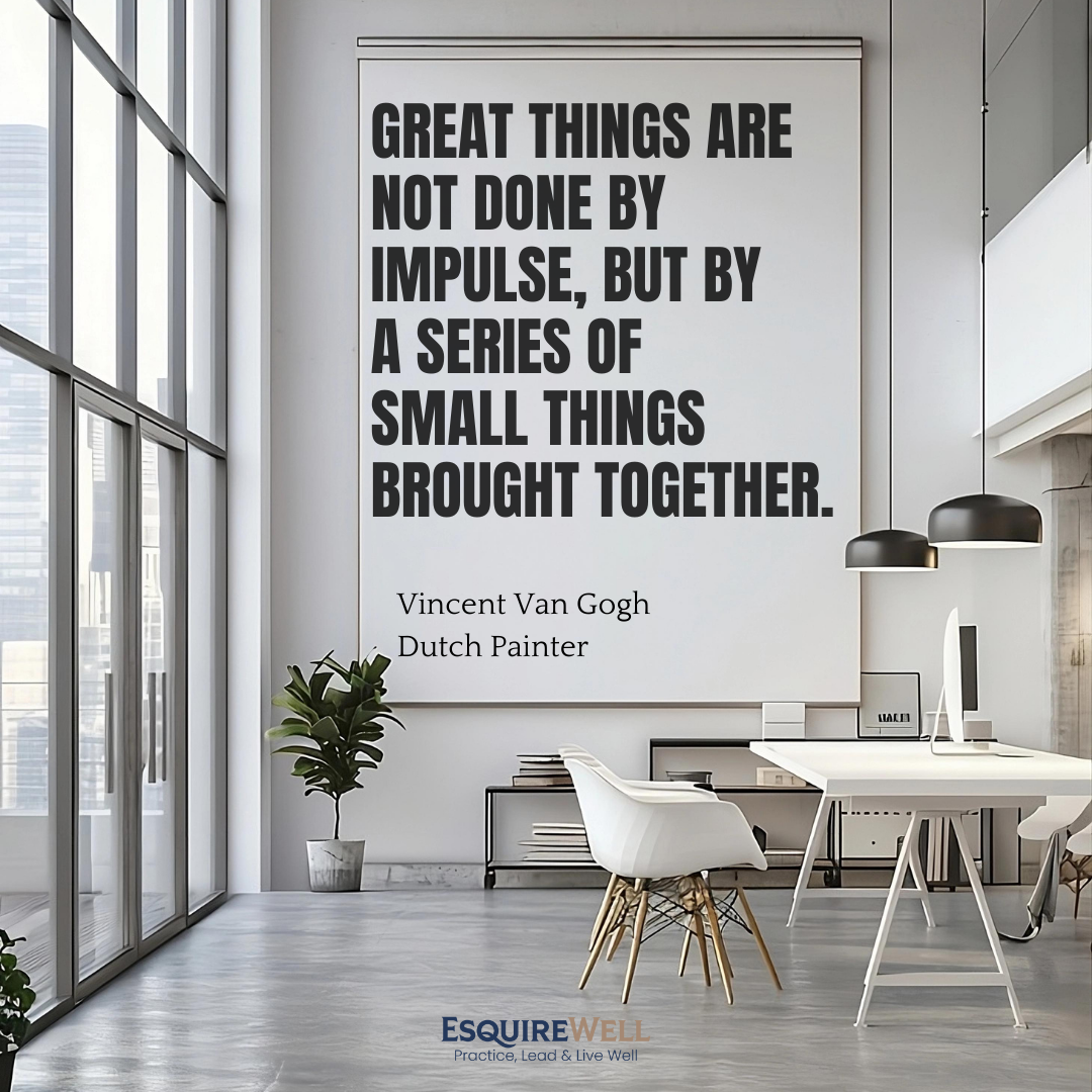 In legal work, projects, workloads, and all the corresponding details can feel massive when viewed all at once. The full scope can be paralyzing. But progress rarely happens all at once anyway. It happens in steps.